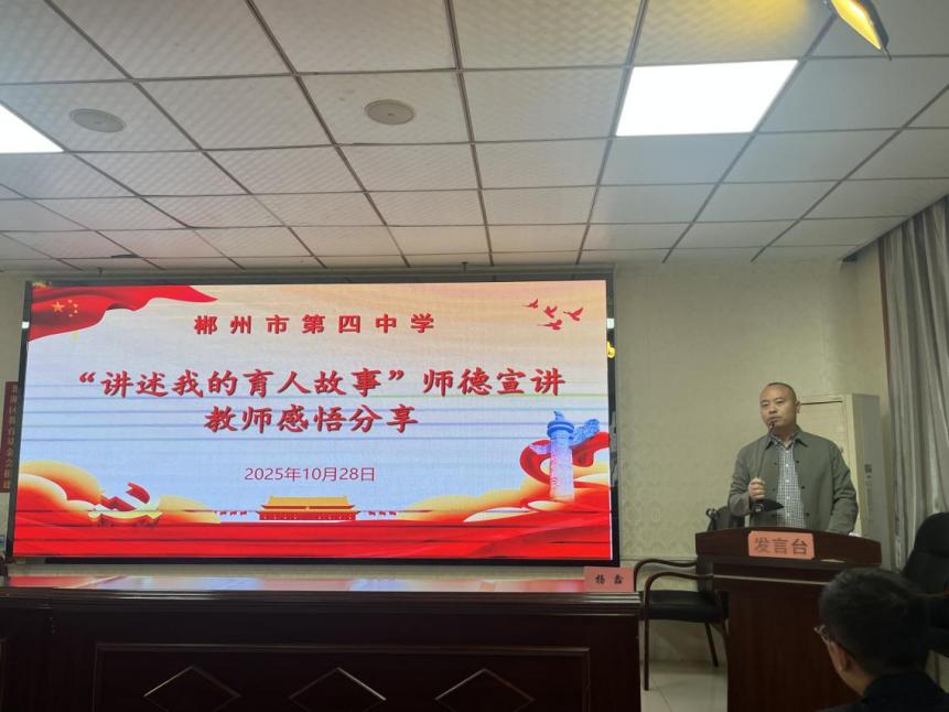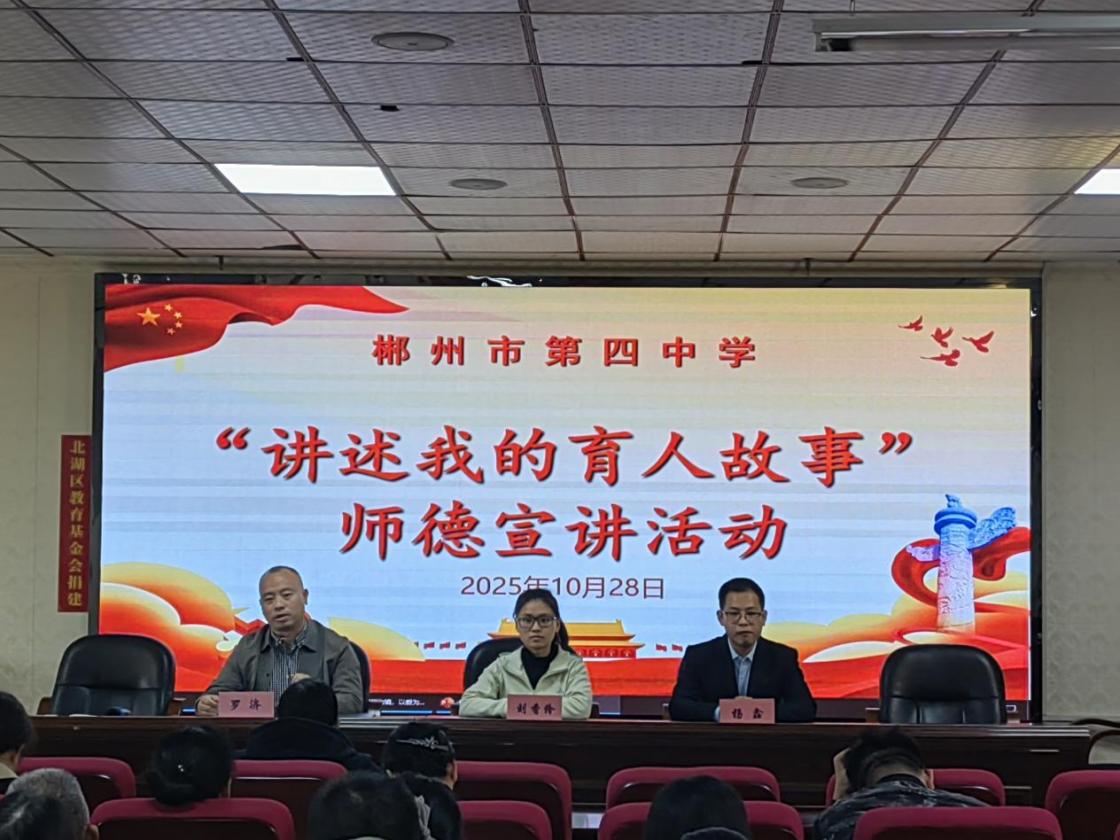 為全面貫徹黨的教育方針,落實立德樹人根本任務,大力弘揚教育家精神,根據上級有關部門的統一部署,并結合學?!皬妿熜袆印钡陌才?,10月28日,郴州市第四中學在騰飛樓六樓會議室舉行2025年“講述我的育人故事”師德宣講活動。北湖區宣講團成員單良、劉香伶、楊鑫蒞臨指導,學校全體教職工參會。